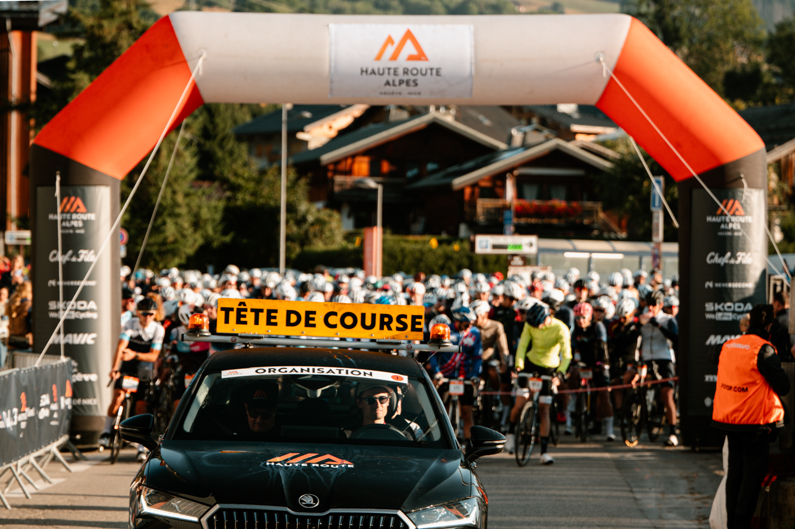 15-minute massage after each stage, lunch on arrival, access to the Haute Route village, and coverage by media teams.